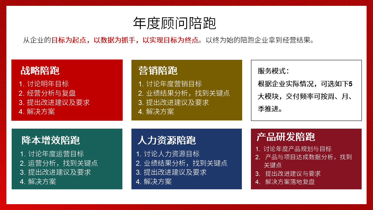 破解經營困惑,解決關鍵卡點,以目標為起點,陪跑企業拿到更好經營結果