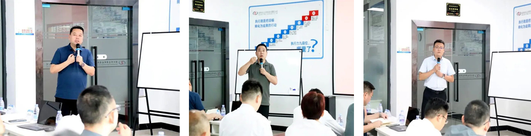 志澤科技王總、于總和唐總分別就各自主管模塊的變革情況做了匯報,指出了目前存在的不足,明確了變革的下一步重點內容,并希望與遠大方略老師攜手進行針對性的專業改善。