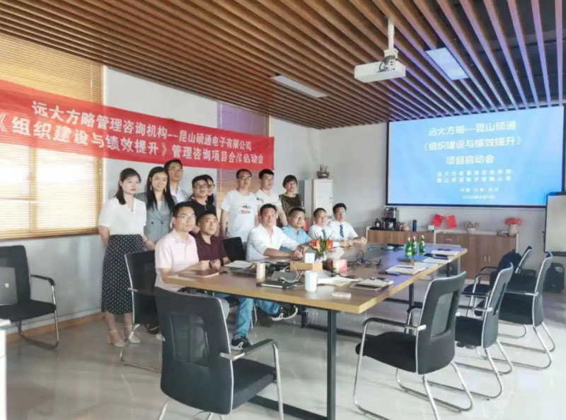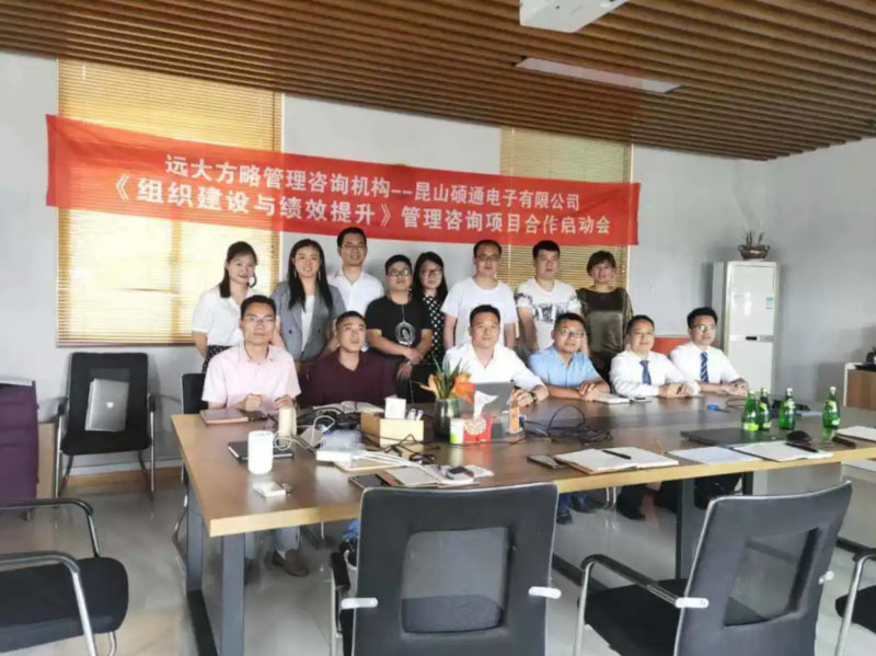 昆山碩通電子有限公司(以下簡稱“碩通電子”)攜手遠大方略啟動《組織建設與績效提升》管理改善項目。遠大方略項目總監劉老師、遠大方略咨詢師呂老師入駐碩通電子,通過前期對碩通電子公司的深入調研與探討,本期項目主要圍繞企業現狀診斷、管理者角色轉型、組織結構優化、崗位職責優化、薪酬體系優化、績效體系優化、年終獎方案等展開改善。