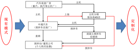 •公司主營特種車,伺機進入快速發展的建筑機械與混凝土攪拌車市場,形成了“汽車底盤采購——攪拌車上裝加工——攪拌車經銷——客戶”的價值鏈