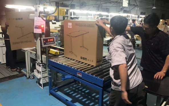 生產車間顯示當前生產機臺名稱、訂單單號、訂單名稱、以及工單信息和各工序當前生產數量、成品圖片,包括巡檢功能和結束報工功能(亦可通過刷卡登錄進行對應操作),當組裝好的桌子經過數據采集工位時,系統自動完成工序報工。
