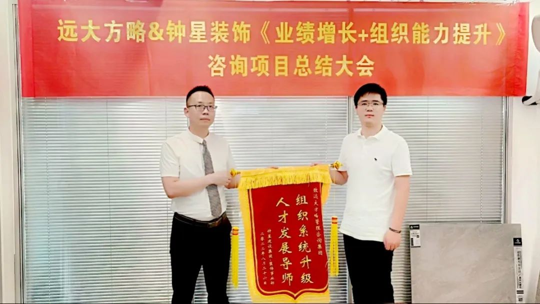 經(jīng)過半年的努力,江蘇鐘星建設(shè)集團(tuán)-裝飾事業(yè)部(以下簡(jiǎn)稱“ 鐘星建設(shè)”)攜手遠(yuǎn)大方略《支撐業(yè)績(jī)?cè)隽康慕M織建設(shè)》咨詢項(xiàng)目圓滿結(jié)束,順利進(jìn)入成果驗(yàn)收階段。在公司全體員工和老師的積極配合與辛苦付出下,成功為公司打造了一個(gè)支撐業(yè)績(jī)?cè)鲩L(zhǎng)的組織團(tuán)隊(duì),推動(dòng)企業(yè)持續(xù)增長(zhǎng)。
