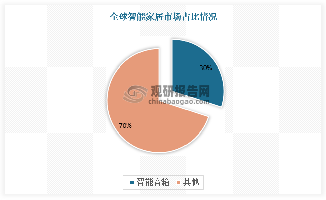 智能音箱是傳統(tǒng)有源音箱智能化升級的產(chǎn)物,是指具備智能語音交互系統(tǒng)、可接入內(nèi)容服務(wù)以及互聯(lián)網(wǎng)服務(wù),同時可關(guān)聯(lián)更多設(shè)備、實現(xiàn)對場景化智能家居控制的智能終端產(chǎn)品。智能音箱集成了人工智能處理能力,可以點播歌曲、上網(wǎng)購物、了解天氣預(yù)報,也可以對智能家居設(shè)備進行控制,比如打開窗簾、設(shè)置冰箱溫度、提前讓熱水器升溫等,深受家庭消費者歡迎。近幾年智能音箱已經(jīng)成為智能家居主流產(chǎn)品,基本維持在30%左右的份額。