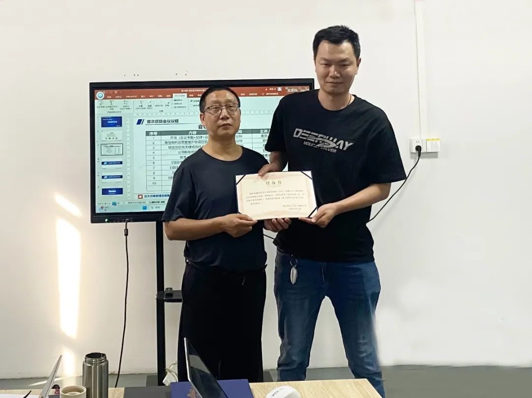 會上,舒總為項目老師和項目關(guān)鍵成員進行授權(quán)和任命。