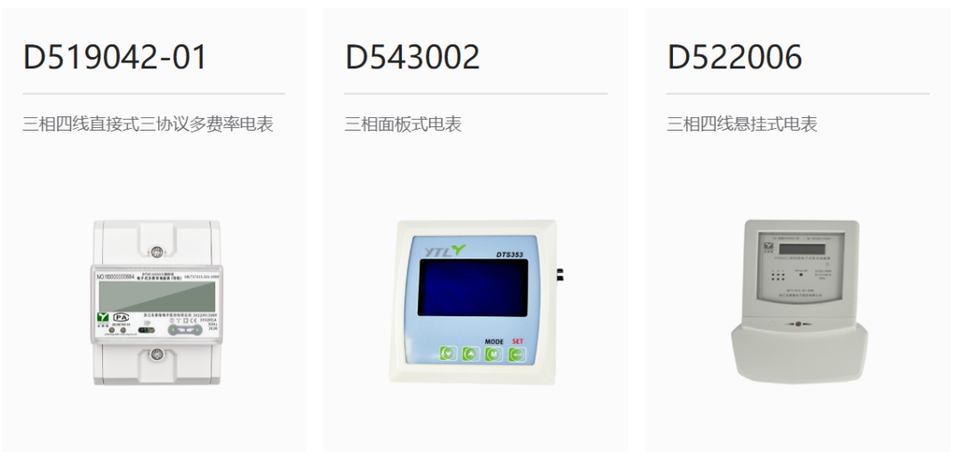 目前公司產(chǎn)品種類(lèi)已達(dá)400多種,電能表功能規(guī)格的覆蓋面廣。產(chǎn)品系列從結(jié)構(gòu)上來(lái)分,主要有導(dǎo)軌式、分體式、面板式、吊勾式、插座式、傳統(tǒng)式等;覆蓋各類(lèi)通訊方式,包括RF、IR、RS232、RS485、PLC、ZIGBEE、LoRa、藍(lán)牙、以太網(wǎng)、WIFI、NB-IoT、GPRS(2G/4G)/GSM,具備研發(fā)、測(cè)試和生產(chǎn)單、三相電子式電能表的能力。